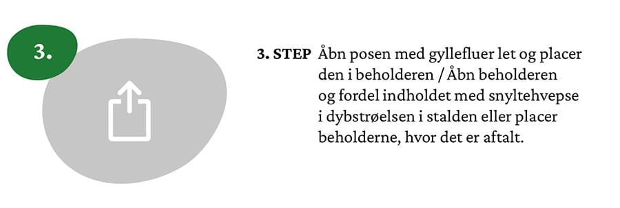 Om du bør anvende gyllefluer eller snyltehvepse afhænger af dit staldsystem, men fælles for dem begge, er at de blot skal tilføres staldens miljø med jævne intervaller for at få god effekt mod de fluer, du gerne vil bekæmpe.