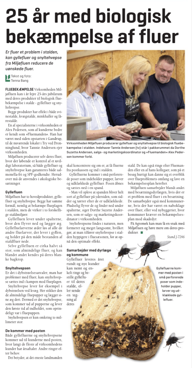 Lokalt, nordjysk firma har stået for naturlig fluebekæmpelse i over tre årtier. Vores Dronninglund. Bragt den 07. feb. 2024