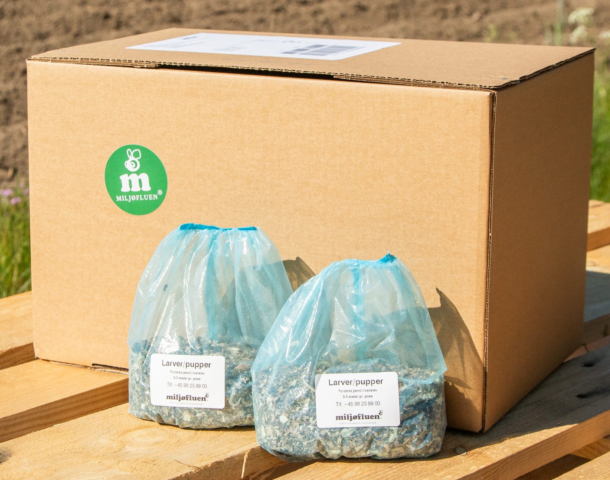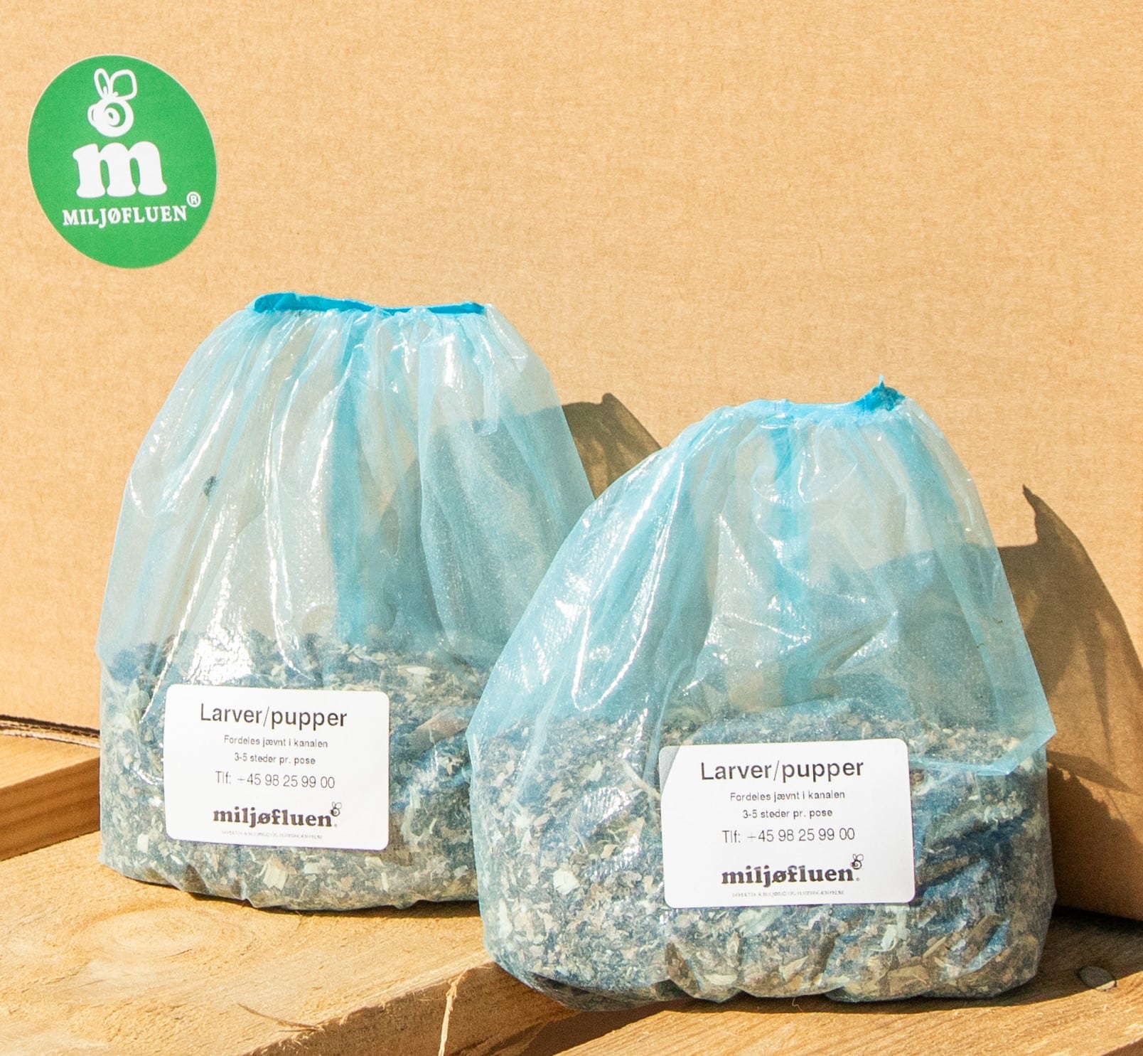 Med larver/pupper fra gyllefluer springer du lidt tid over, hvor gyllefluerne normalt skal klække i miljøbeholderen for dernæst at flyve ned i kanalen for at lægge æg, der bliver til larver og pupper. Du øger derfor hastigheden hvormed bekæmpelsen kan begynde og du hjælper gyllefluerne hen til de rette bekæmpelsessteder i kanalen.