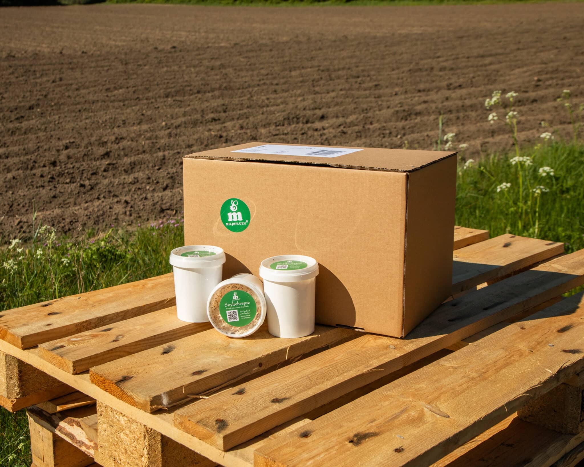 Snyltehvepse fra Miljøfluen® sendes i bægre ud til stalden pr. post med jævne mellemrum. Derfor fungerer en bekæmpelsesløsning med snyltehvepse som en abonnementsløsning – uden binding.